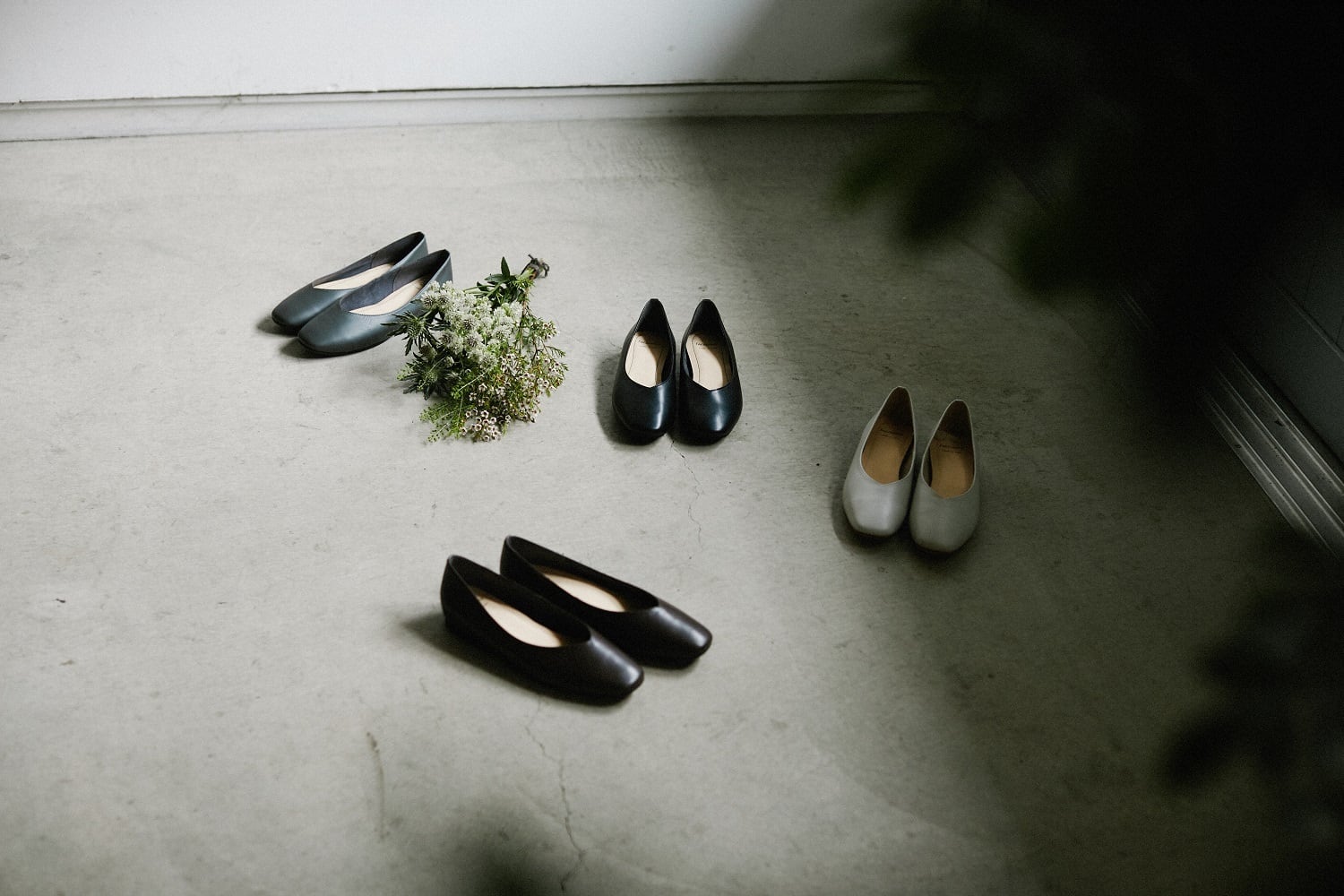 足がいちばんキレイに見える、甲の深さと履き口のラインにこだわったVカットフラットシューズ。