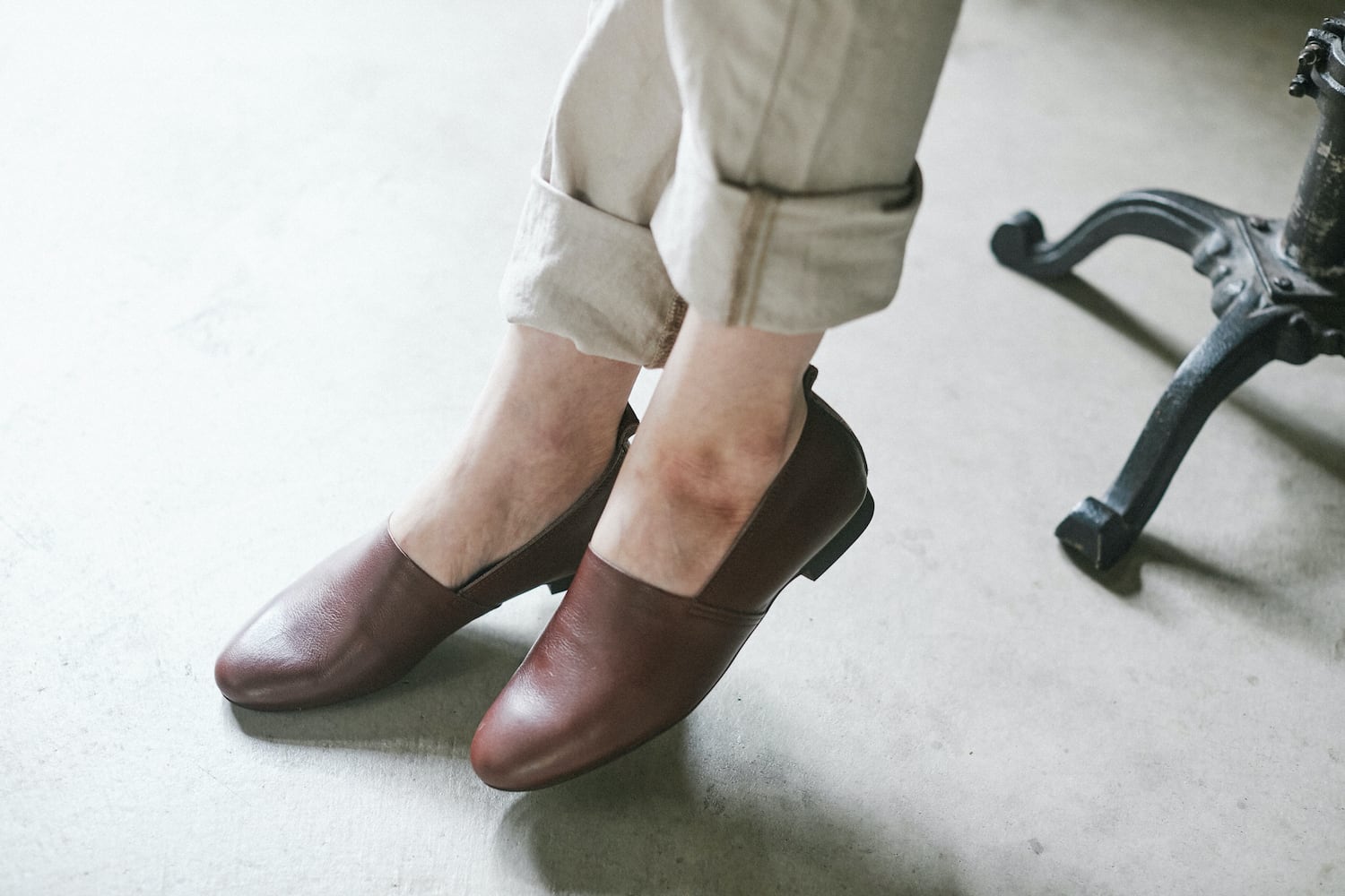 後ろ側の芯を外しているので、かかとを踏んでバブーシュとしても楽しめます。